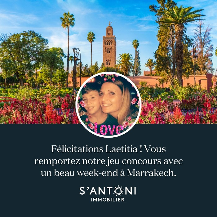 Félicitations à notre cliente qui a remporté notre jeu concours, un week end pour 2 personnes à Marrakech !