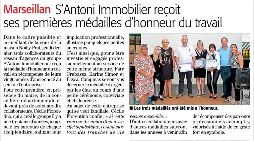 S'ANTONI Immobilier reçoit ses premières médailles d'honneur du travail